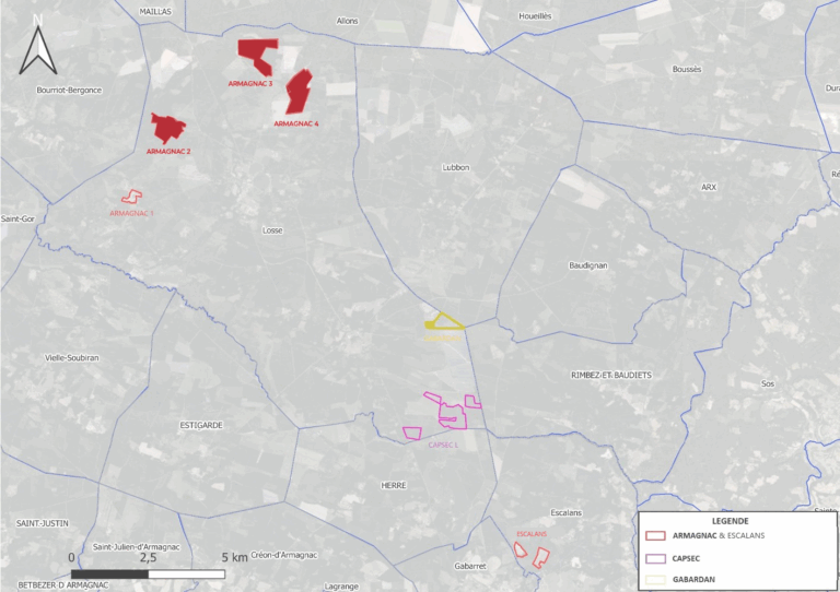 L’enquête publique, ouverte à partir du XXX porte sur les projets Armagnac 2, 3 et 4, au nord de la commune de Losse (identifiés sur la carte ici).